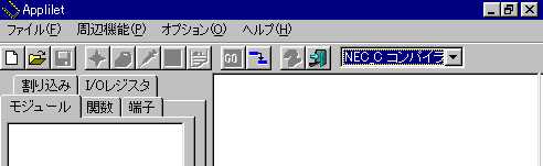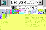 啓二:ツールバーの右端に、ボックスがあるから、 「NEC_ASMコンパイラ」になっているか確認する。 なって、なければ、マウスで▼を表示して、指定 項目を表示し変更する。
