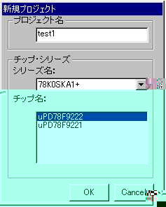 啓二:プロジェクト名、シリーズ名、チップ名を決める。 プロジェクト名は、test1とでもしておくか。