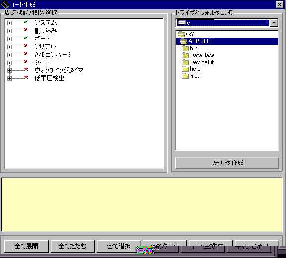 Appliletが出力する情報を、保存するフォルダを 指定する。ドライブ、フォルダの順に指定する。