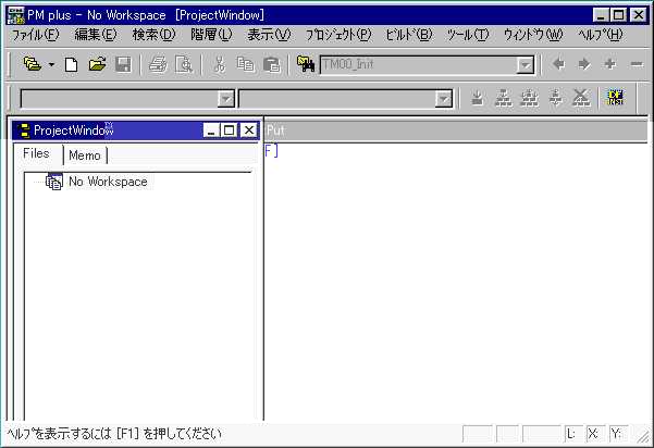 哲 :「PM Plus」って、何だ。 啓二:Programming Managerだ。要するに開発環境。 哲 :あれま、VC++の開発環境にそっくりだ。