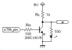 哲 :どうかで見たような回路だな。そうだ、この前やった仕事 で見たぞ。確か、時間が来たら、照明をオンオフする仕様 だった。それで、マイコンをはさむから、シリアルで命令 を送ってくれとか何とか言っていたな。 啓二:それじゃ、話が早い。マイコンの制御出力を、真ん中にある フォトダイアックに入れて、AC100V側のトライアック をオンオフするんだ。一度オンさせると、制御出力に、Lを 与えるまで、AC100Vをコネクタに出し続ける。 哲 :この前の仕事では、業者がキットを使っていたな。知らないか。 啓二:ああ、知っているよ。¥350くらいだったと記憶している。 2個買っても、¥700だな。 哲 :そんな程度か。ならば、キットを使うようにするよ。 啓二:その方がいいな。じゃあ、インターネットで手配しろよ。 秋月電子通商のホームページで、代引き指定で発注する。 哲 :うん、やっておく。 啓二:78kのピン割当てをかくと、こんなんだな。